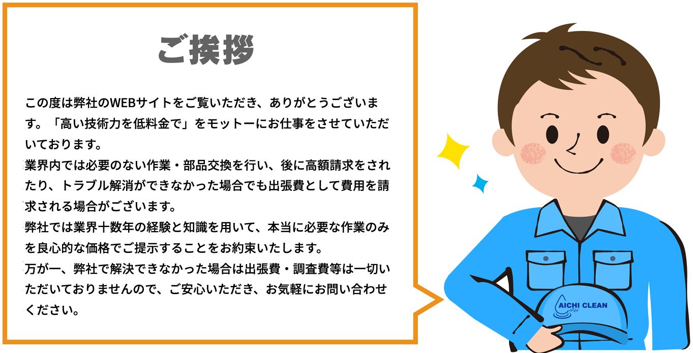 業界経験が長く、確かな技術力で数々のトラブルを解決。アイチクリーンにお任せください。