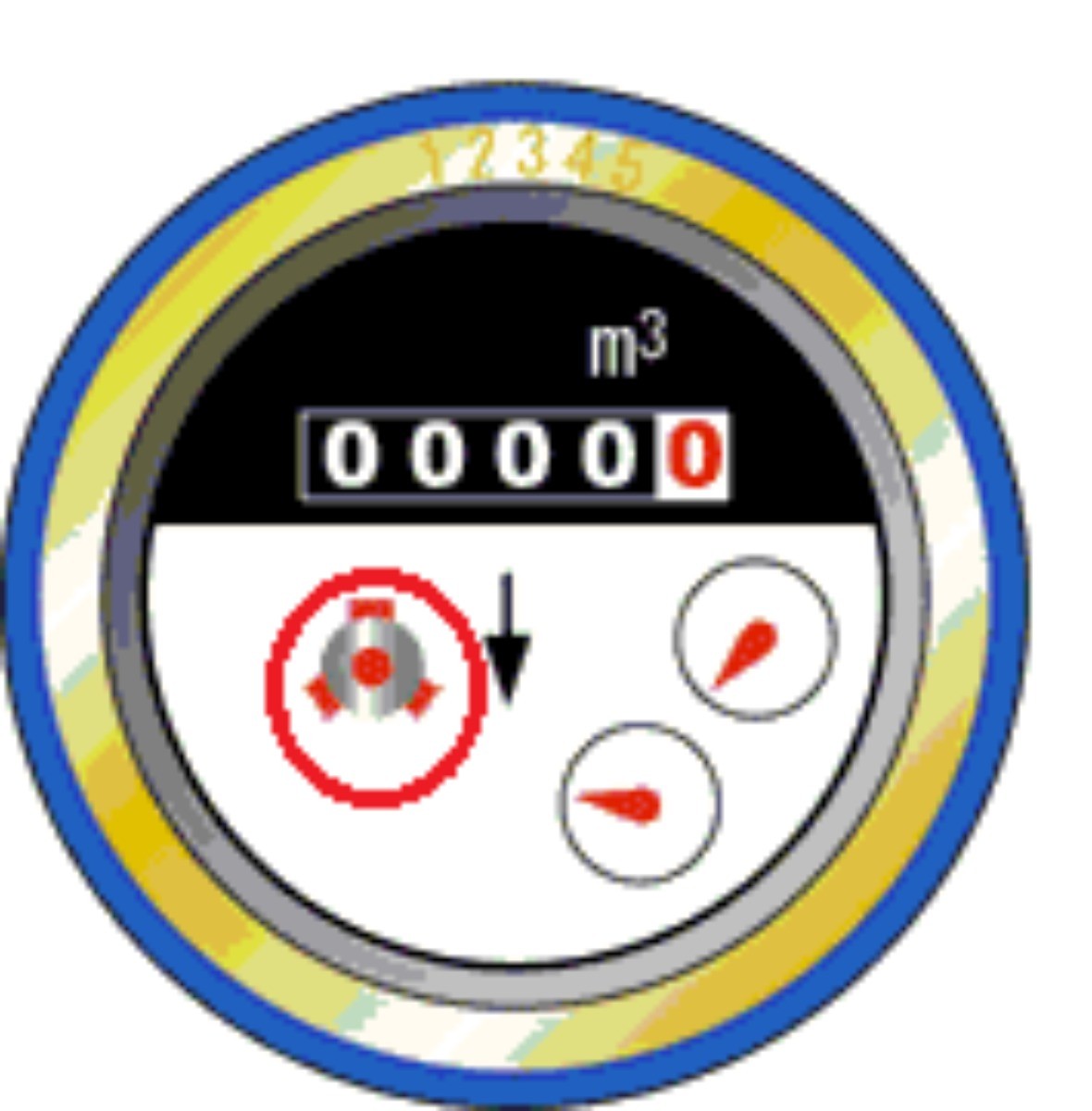 そうしましたら水道メーターを見て頂き赤丸印のパイロットと呼ばれる部分を見て下さい。