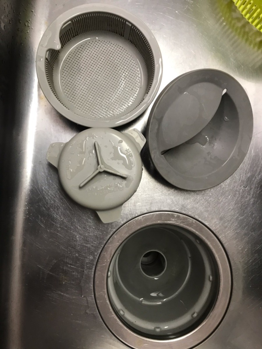 排水口には大きな物が流れないように2段階あるいは3段階で流さないようにする構造になっていますが