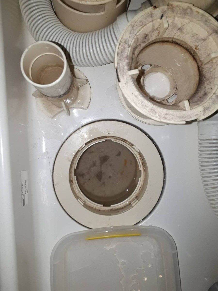 ここが詰まると洗濯水が排水せずに溢れて洗面所が水浸しになってしまう事が稀にあります。