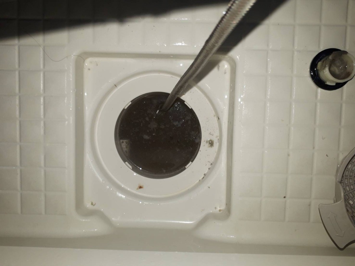 写真は排水管の汚れが剥がれた様子です。